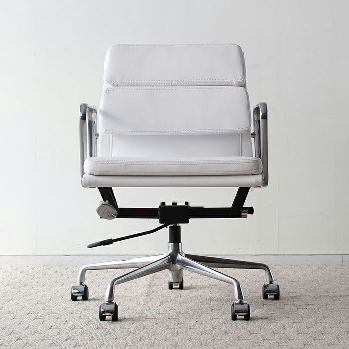 イームズ アルミナムチェア オフィスチェア ミドルバック ソフトパッド ホワイト PVC アルミナムグループ ブランド名イームズ アルミナムチェア アルミナムグループ ミドルバック ソフトパッドサイズ・容量幅 69cm × 奥行 61cm × 高さ 80cm〜86cm座面の高さ 45cm〜51cm肘高 61cm〜67cm、肘幅 56cmホワイト規格シート:PVCレザー + ウレタンフォーム脚部:アルミ注意事項組立て式ガス圧高さ調整可能リクライニング機能付きご注意※本製品はリプロダクト(ジェネリック)品となります。