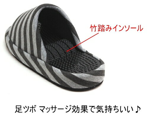 竹ふみタイプのインソールが足裏を刺激して気持ちいい/足つぼマッサージ効果/おしゃれなボーダー柄/やさしい肌触りのニット素材