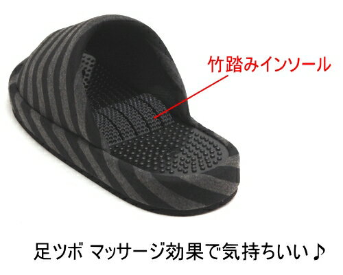竹ふみタイプのインソールが足裏を刺激して気持ちいい/足つぼマッサージ効果/おしゃれなボーダー柄/やさしい肌触りのニット素材