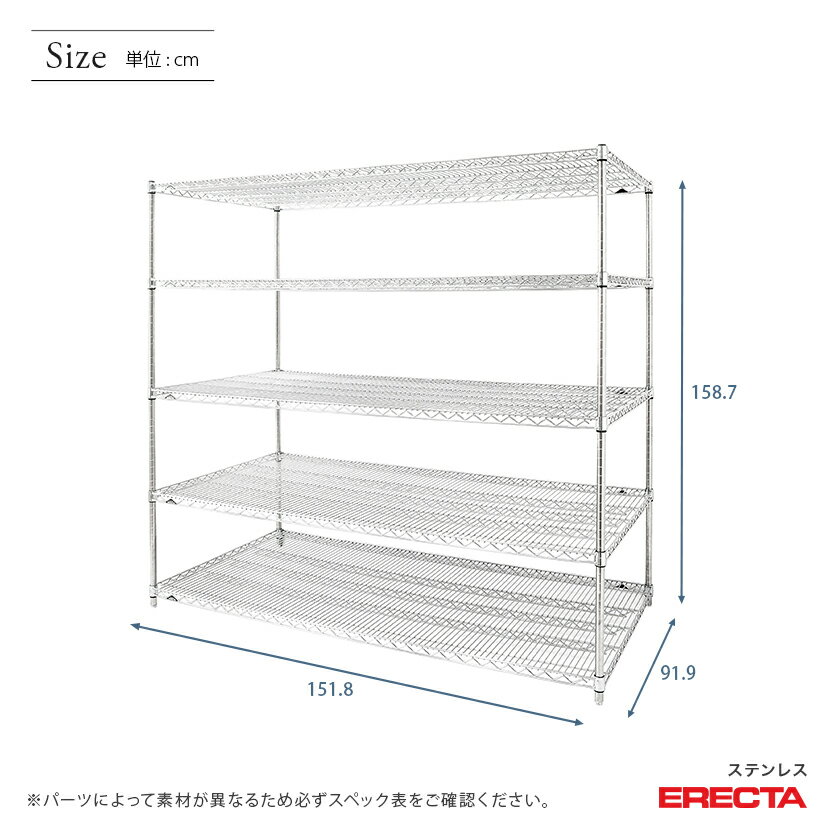 【送料無料】 エレクター ERECTA ステンレスエレクター シルバー ステンレスラック ステンレス製 ステンレス棚 什器 厨房 収納ラック 業務用 オフィス 会社 幅150×奥行90×高さ160 5段 SLLS1520PS1590W5 メタル製ラック アルミラック