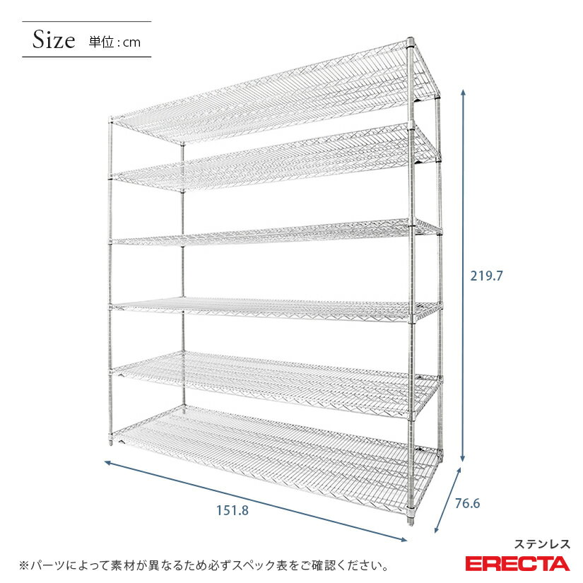 【送料無料】 エレクター ERECTA ステンレスエレクター シルバー ステンレスラック ステンレス製 ステンレス棚 什器 厨房 メタルシェルフ ステンレスシェルフ ワイヤーラック 収納ラック 業務用 オフィス 会社 幅150×奥行75×高さ220 6段 SLMS1520PS2200W6 スチールラック