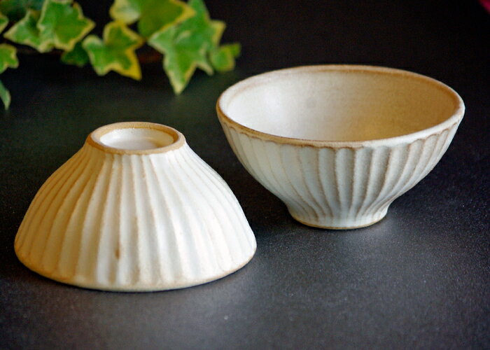 kinariしのぎ ご飯茶わん 優しいアイボリーホワイトのご飯茶わんです 縦方向に入ったしのぎ(削り)はすべて手仕事なのです。