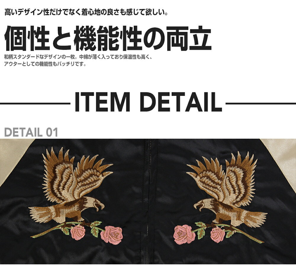 商品特徴&ご注意点綺麗で細やかなデザイン刺繍、カジュアルな着こなしにも対応のhoshihime〜星姫〜のサテンスカジャンです。