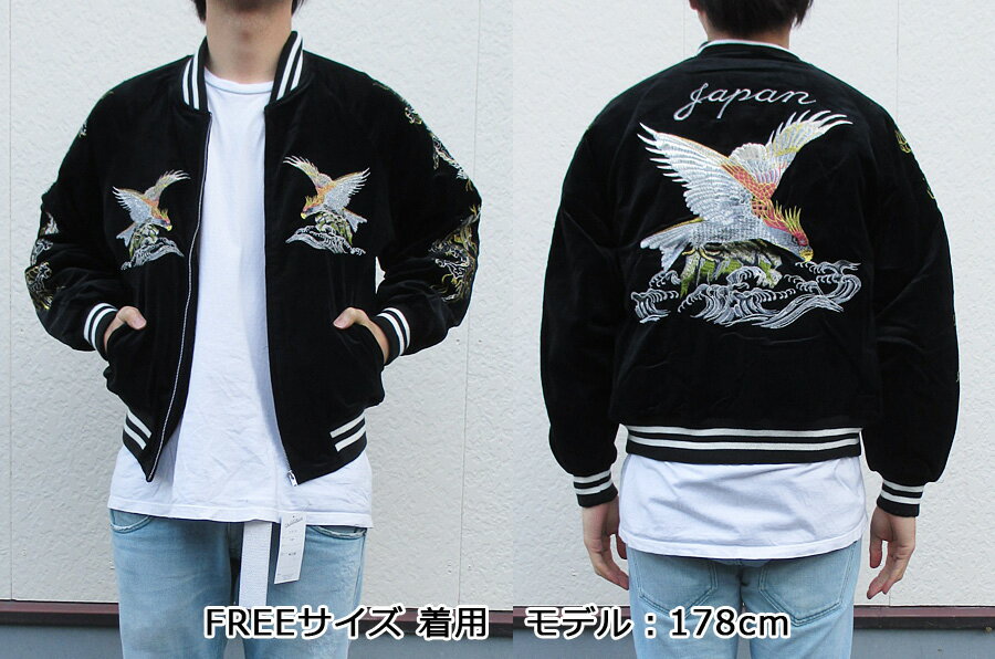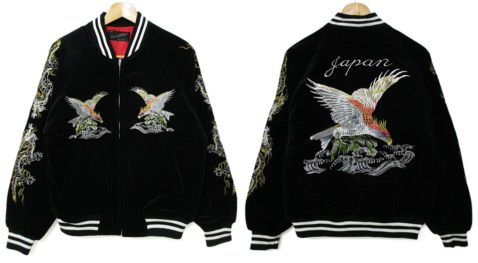 商品説明 波の上を力強く羽ばたく鷹が刺繍された「波鷹」別珍スカジャン。